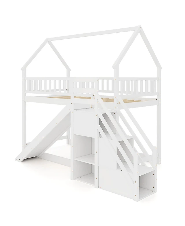 Streamdale Wooden Twin Over Full Bunk Bed with Playhouse, White
