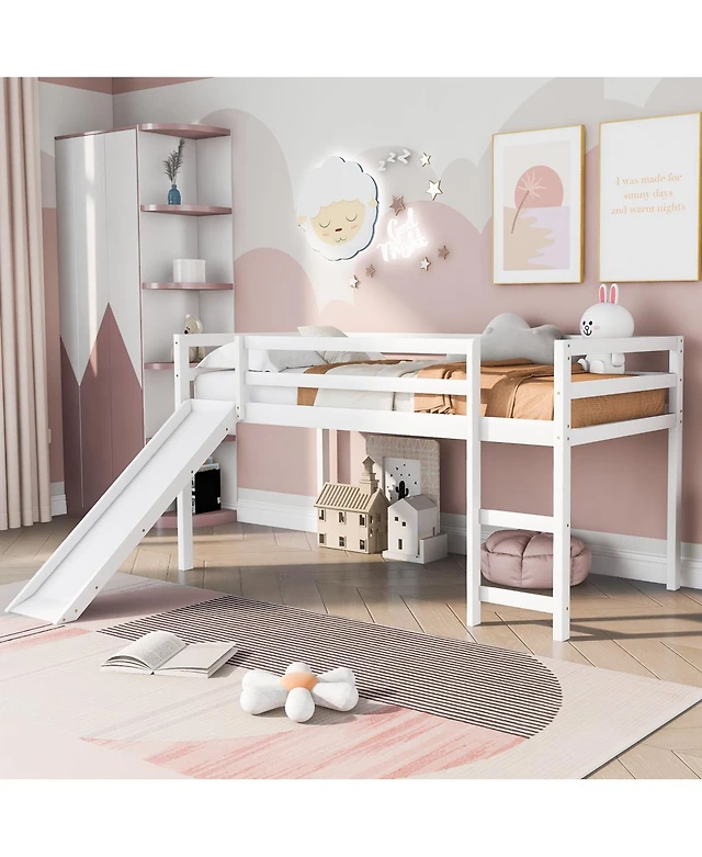 Streamdale Furniture Pink Low Loft Bed with Desk, Storage & Whiteboard