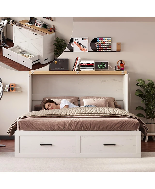Streamdale Furniture Rotating Queen Murphy Bed with Hidden Cabinet