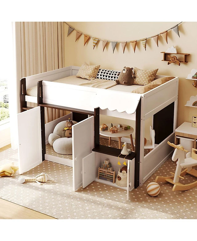 Slickblue Full Kids Floor Bed with Integrated Book Storage