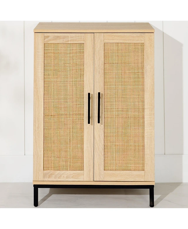 Tribesigns Shoe Cabinet with Doors and Drawer, Modern Shoe Storage Cabinet for Entryway, Rattan Wooden Shoe Organizer with Adjustable Shelf, Green