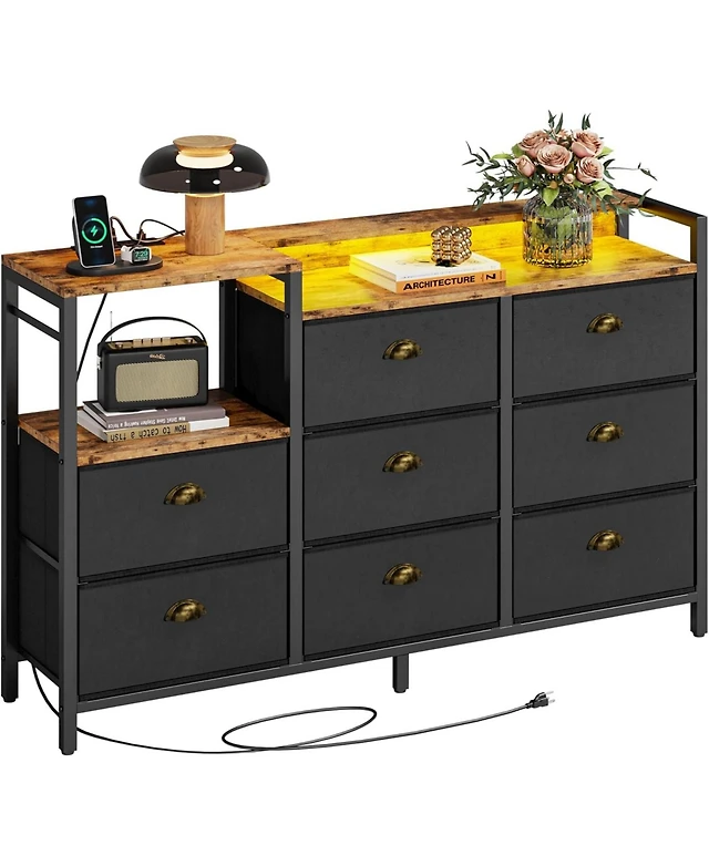 Gymax Drop Leaf Kitchen Island Cart W Power Outlet Wine Rack Glass Holder Drawer