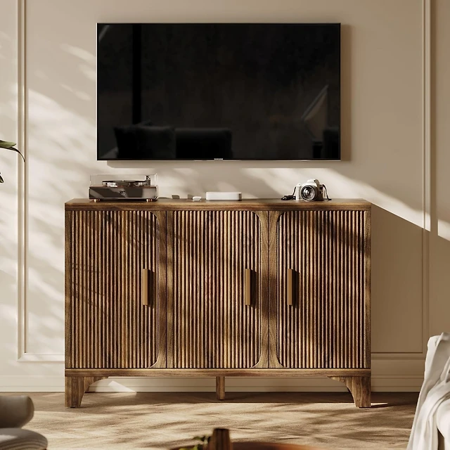Gouun Rattan Buffet Cabinet with 2 Doors and 2 Cubbies