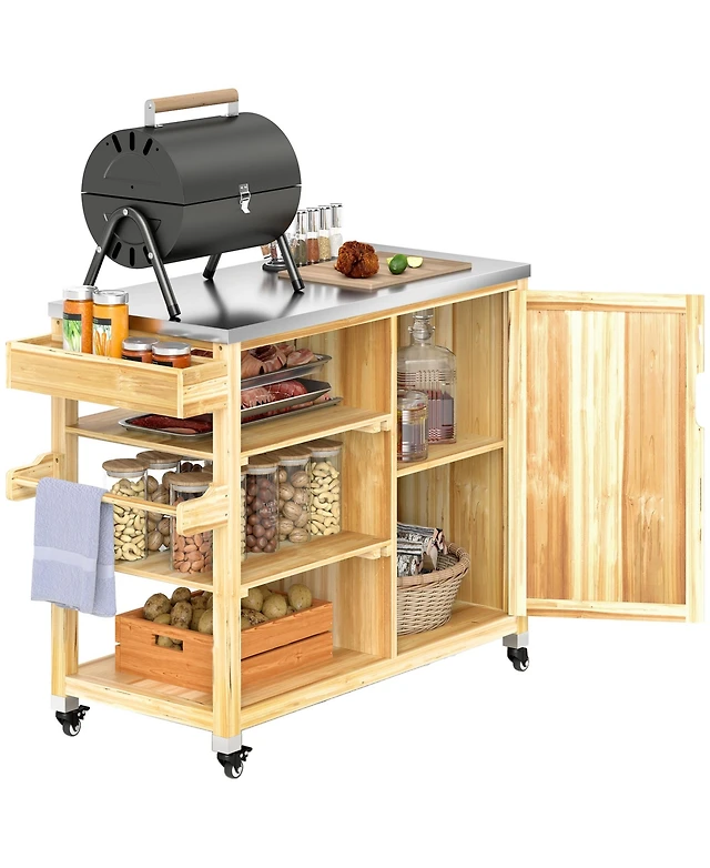 Outsunny Grill Cart, Stainless Steel Top Kitchen Island with Drawer,