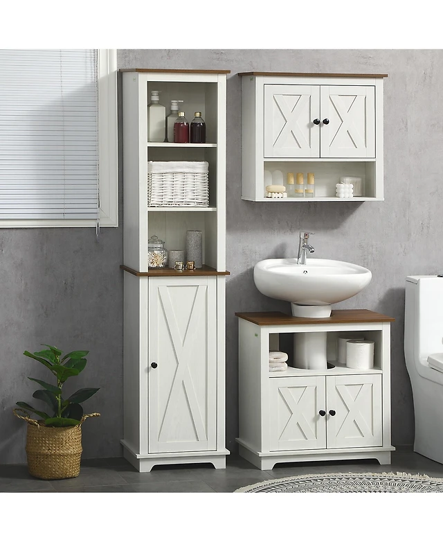 kleankin Wooden Bathroom Floor Cabinet with 2 Doors, 2 Drawers and Adjustable Shelf,