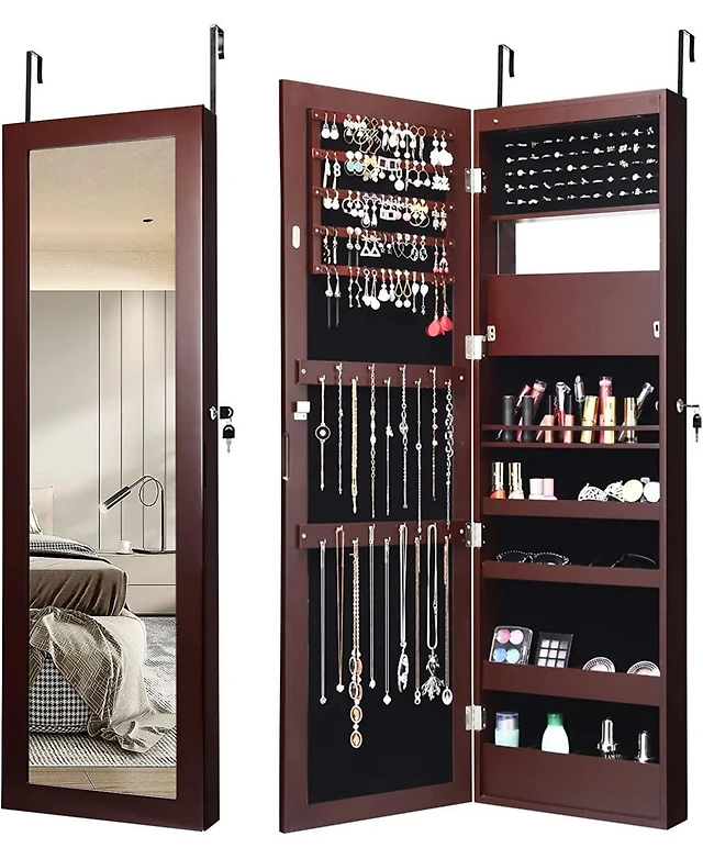 Streamdale Led Curio Cabinet, Oak Display Case with Glass Doors and Adjustable Shelves