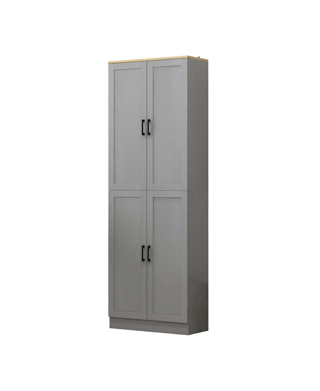 Sugift Kitchen Pantry Cabinet with Wood Top and Hutch