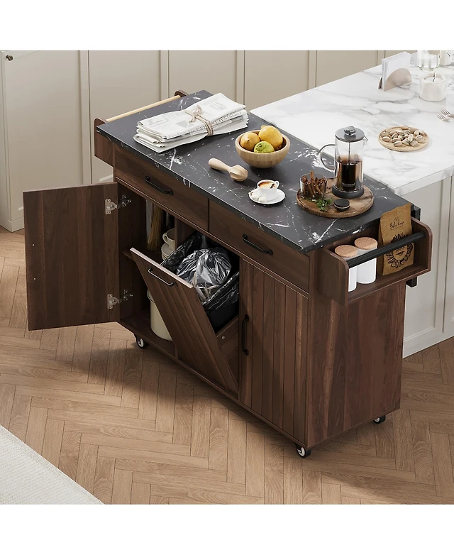 54.3" Kitchen Island Cart, Storage Cabinet with Solid Wood Top, 4-Door Cabinet, 2 Drawers & Locking Wheels-Maison Boucle