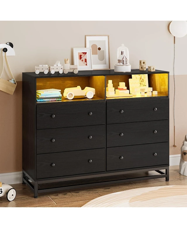gaomon Fluted 6 Drawers Dresser for Bedroom, 54" Wide Modern Chest of with Metal Handle, Wooden Organizer Bedroom.