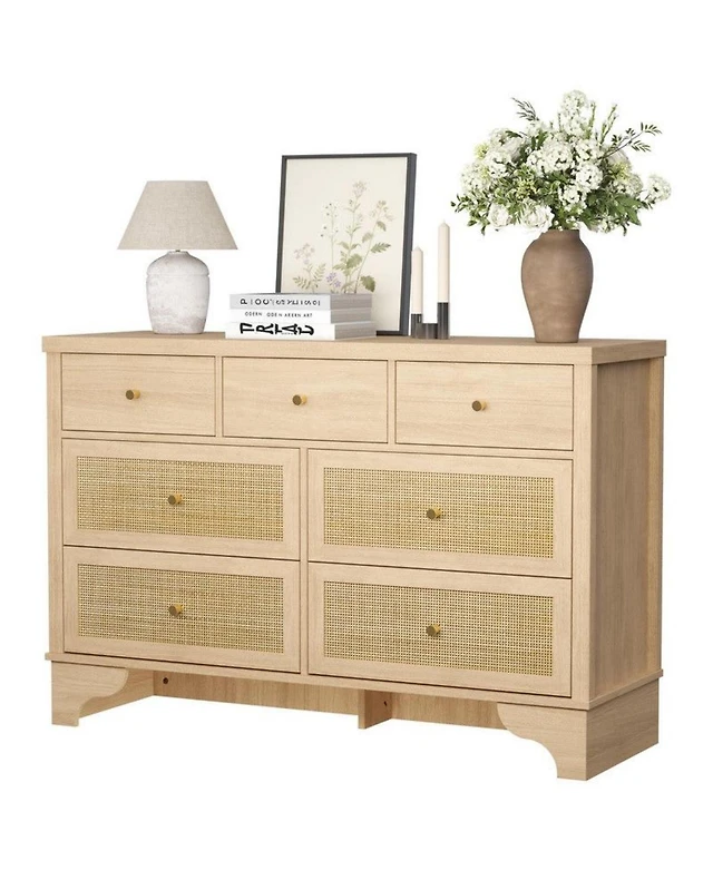 gaomon 5 Drawers Dresser, 46 in Tall Modern Chest of Drawers with Natural Texture, Curved Profile Design, Dresser Tv Stand