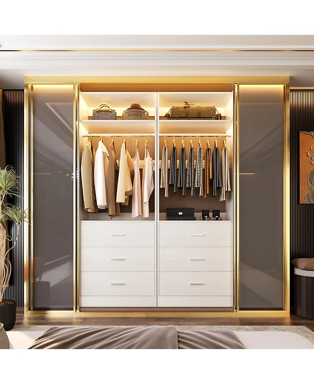 Aheaplus 40'' Large Corner Closet Organizer System with 12 Shelves, 6 Tier Walk-in 2 Hanging Rods