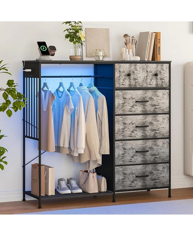 Aheaplus Heavy Duty Closet Rack with 5 Hanging Rods & 3 Fabric Drawers, Reversible Garment Shelves for Closet/Bedroom
