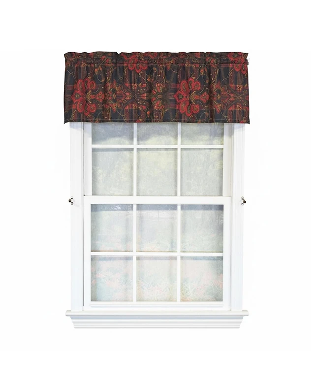 Rlf Home 100% Cotton Hawthorn Banded With Poly/Cotton Ivory lining Rod Pocket Valance 50" x 17" Red