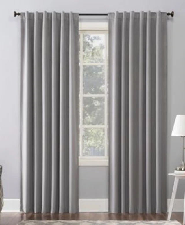 Sun Zero Parsons Herringbone Magnetic Closure 100% Blackout Rod Pocket Curtain Panel Pair