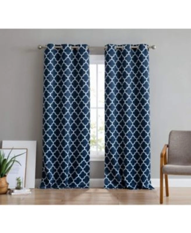 Kate Aurora 2 Pack: Thermal Lined Gray & White Trellis Grommet Blackout Curtains