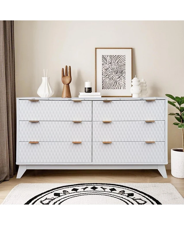 gaomon 6-Drawer White Fluted Engineered Wood Dresser, Metal Legs & Handles, Modern Storage for Bedroom, Living Room