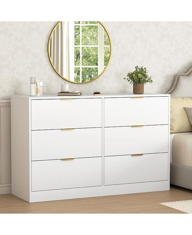 Streamdale Furniture 6 Drawer Double Dresser For Bedroom Living Room Hallway, White
