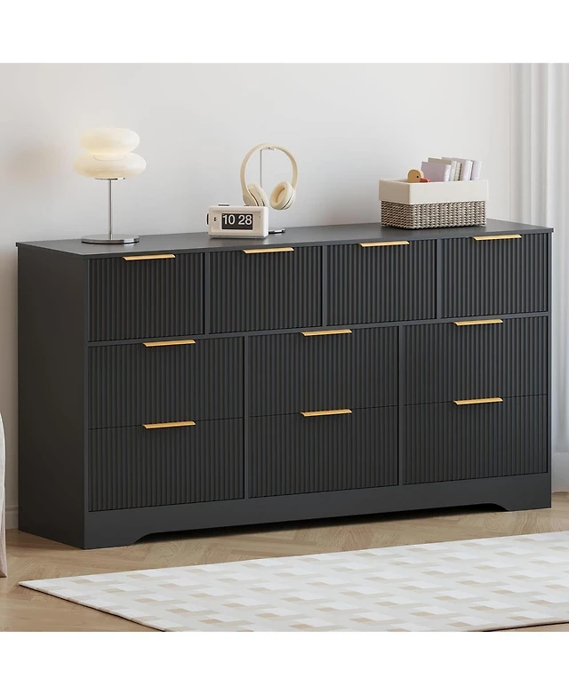 Gaomon Fluted Dresser for Bedroom with 9 Deep Drawers, 60.6 Wide Modern Chest of Wooden Tv Stand