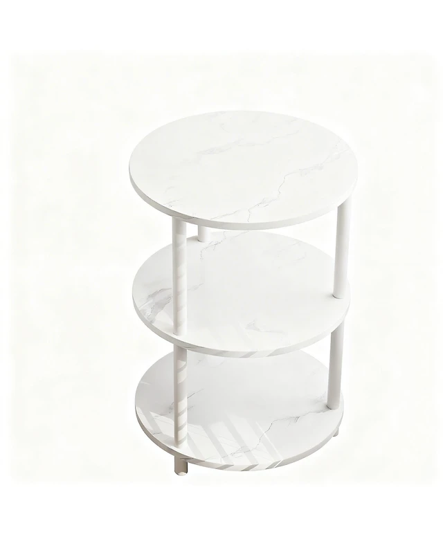 Kings Brand Furniture Side End Table with Faux Marble Storage Shelves & Gold Metal Frame, Nightstand for Bedroom, Living Room, or Modern Accent Table