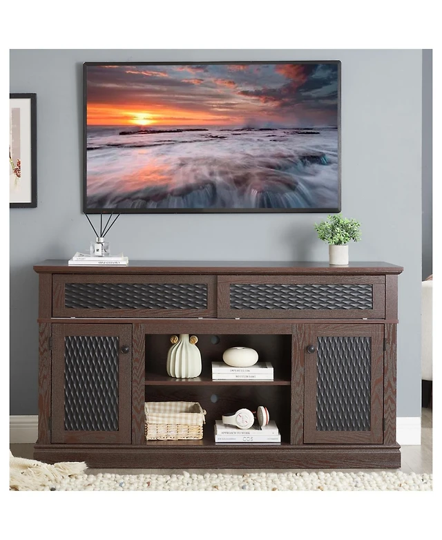 Wlive Tv Stand for 55 60 inch Boho Entertainment Center with Storage Cabinets Console Living Room Decor
