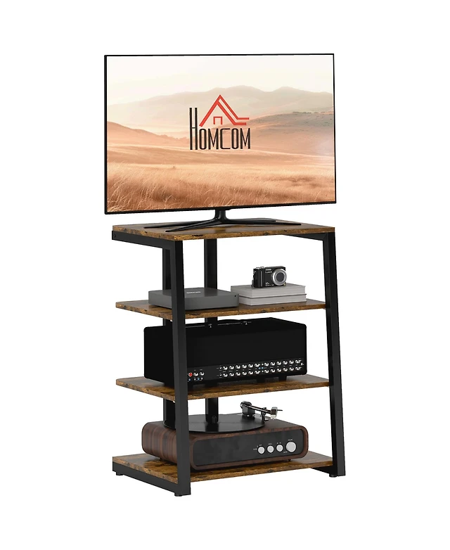 Tv Stand, Av Media Stand, Corner Audio Tower with Storage Shelves and Steel Frame, Living Room Storage, Gray