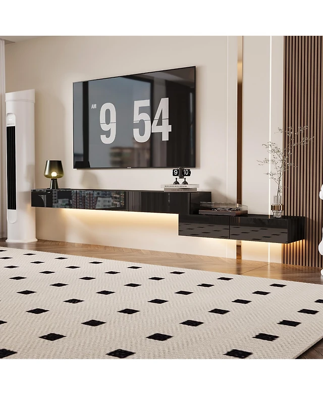 Black wall-mounted Tv stand, entertainment center with five drawers, media console with light strip