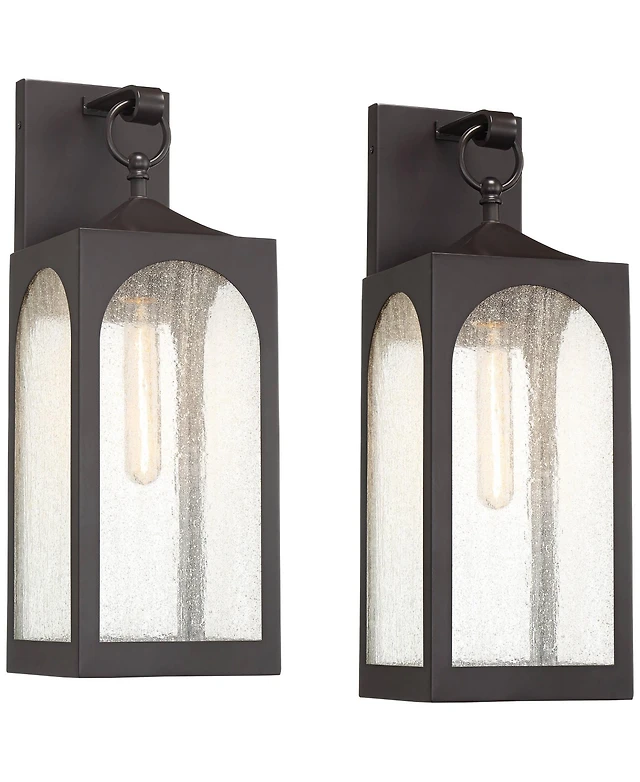 Hogan Vintage-like Outdoor Wall Light Fixture Oil Rubbed Bronze 14" Seedy Glass Dusk to Dawn Motion Sensor for Exterior House Porch Patio Outside