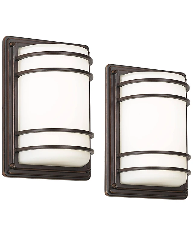 Lyons Modern Industrial Outdoor Wall Light Fixtures Set of 2 Bronze Black Box Frame Led 8" for Post Exterior Barn Deck House Porch Yard Patio Garage G
