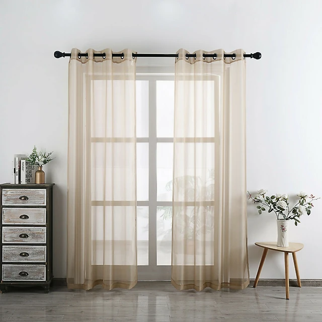 Half Price Drapes Double Layered Off White Sheer Curtain