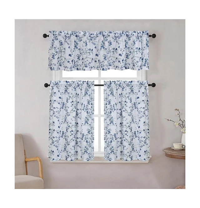 Kate Aurora Complete 3 Piece Rod Pocket Cherry Blossom Cafe Kitchen Curtain Tier & Valance Set