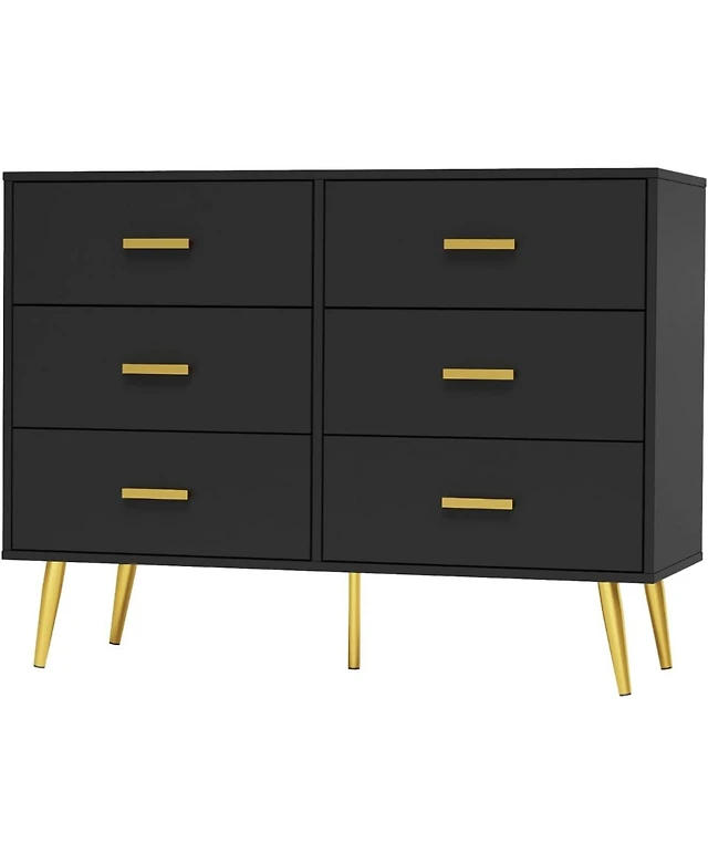 gaomon 6 Drawer Dresser, Modern White Chest of Drawers with Gold Metal Legs and Handles, Large Double Wooden Dresser for Bedroom