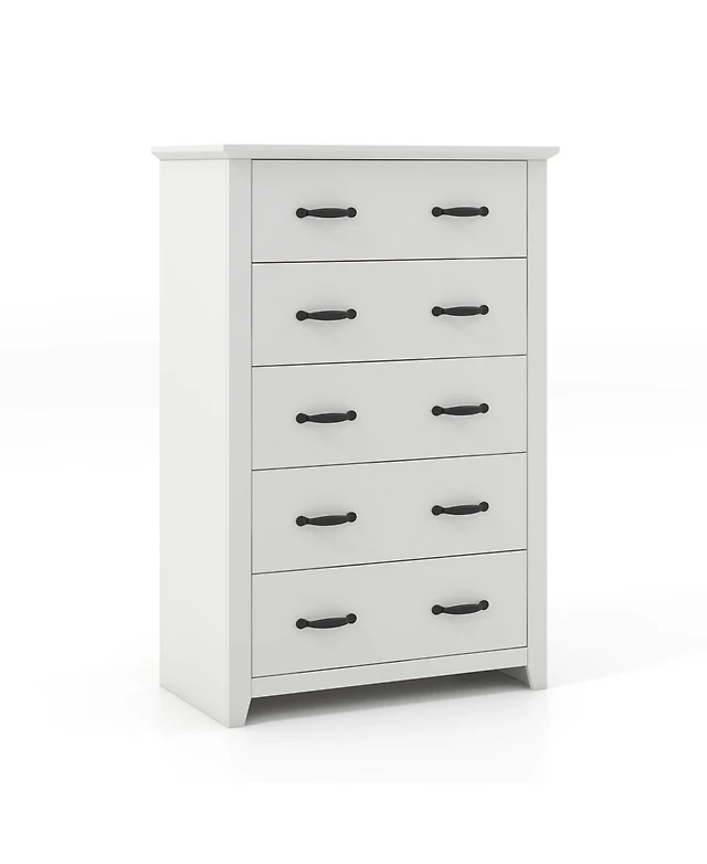 Wlive Fabric Dresser 5-Drawer Tall for Bedroom Storage Organizer with Bins Wood Top Sturdy Steel Frame Chest of Drawers Clo