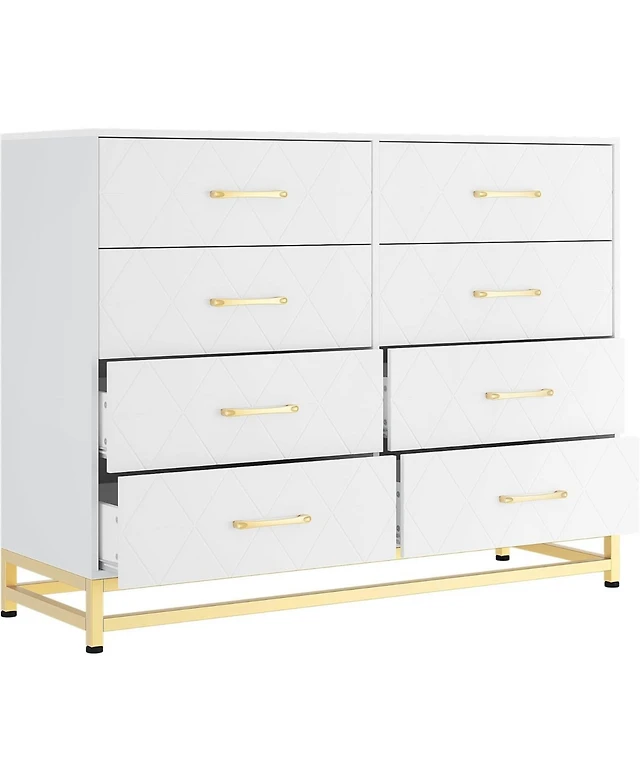 gaomon Fluted Dresser for Bedroom with 8 Drawers,Modern Chest of Drawers with Handle less, Wooden Dresser Tv Stand, Wood Clothes Closet Organizer