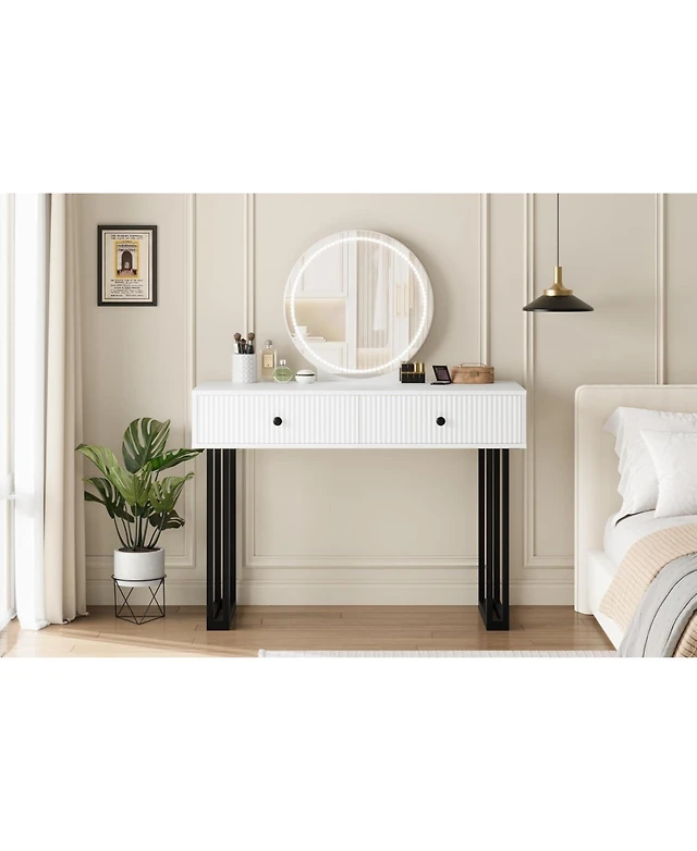 Gaomon White 2-Drawer Lighted Mirror Vanity, Clean-Lined Makeup Desk for Bedroom Interiors