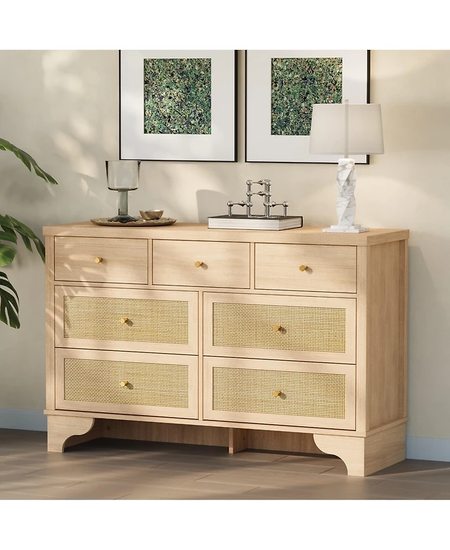 gaomon Drawer Tall Rattan Dresser, Modern Wooden Storage Chest with Handles & Wide Top for Living Room Bedroom Hallway Entryway