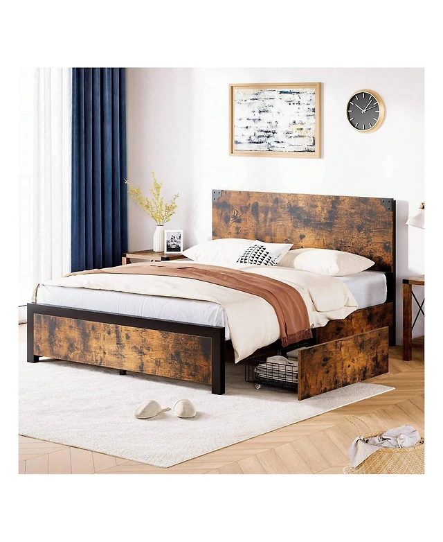 gaomon Upholstered Bed Frame With Charging Station Headboard & 4 Storage Drawers, Platform Bed Frame Mattress Foundation With Wooden Slats Support