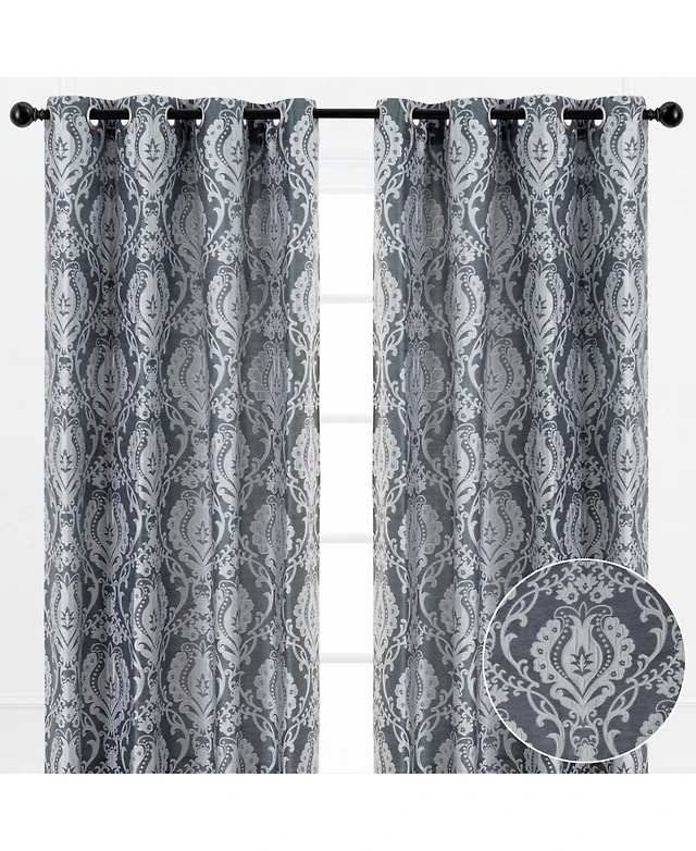 Half Price Drapes Magdelena Champagne Beige Damask Faux Silk Jacquard Room Darkening Curtain