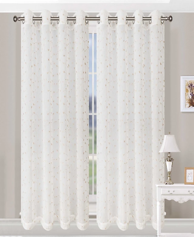 Hlc.Me Audrey Embroidered Premium Soft Decorative Sheer Voile Light Filtering Grommet Window Treatment Curtain Drapery Panels For Bedroom Living Room Set Of 2 Panels