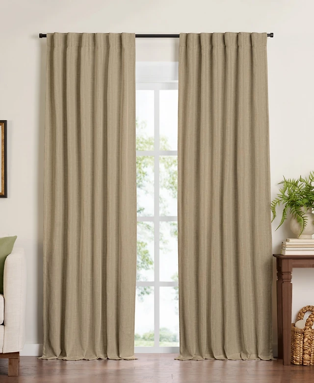 Half Price Drapes Sepia Tan Italian Faux Linen Room Darkening Curtain