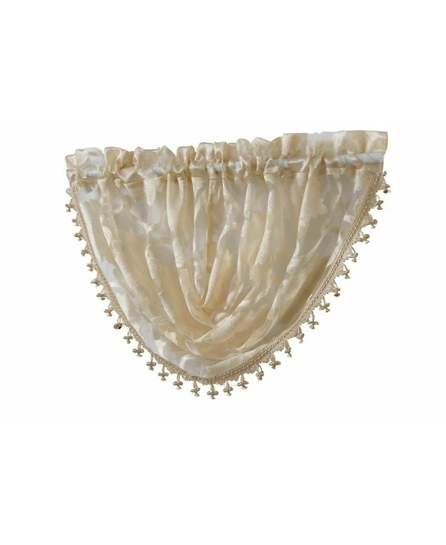 Ellis Curtain Lexington Leaf Pattern on Colored Ground Scallop Valance 58"x15" Tan