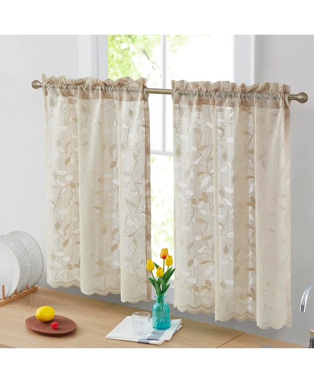 Hlc.me Audrey Embroidered Sheer Voile Window Curtain Short Rod Pocket Tiers for Kitchen, Bedroom