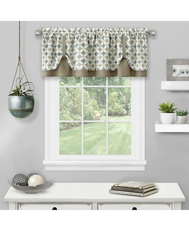 Kate Aurora Modern Geometric Button Tuck Rod Pocket Window Valance
