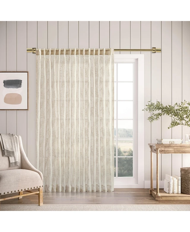 Bridget Embroidered Leaf Sheer Rod Pocket Window Tie-up Shade