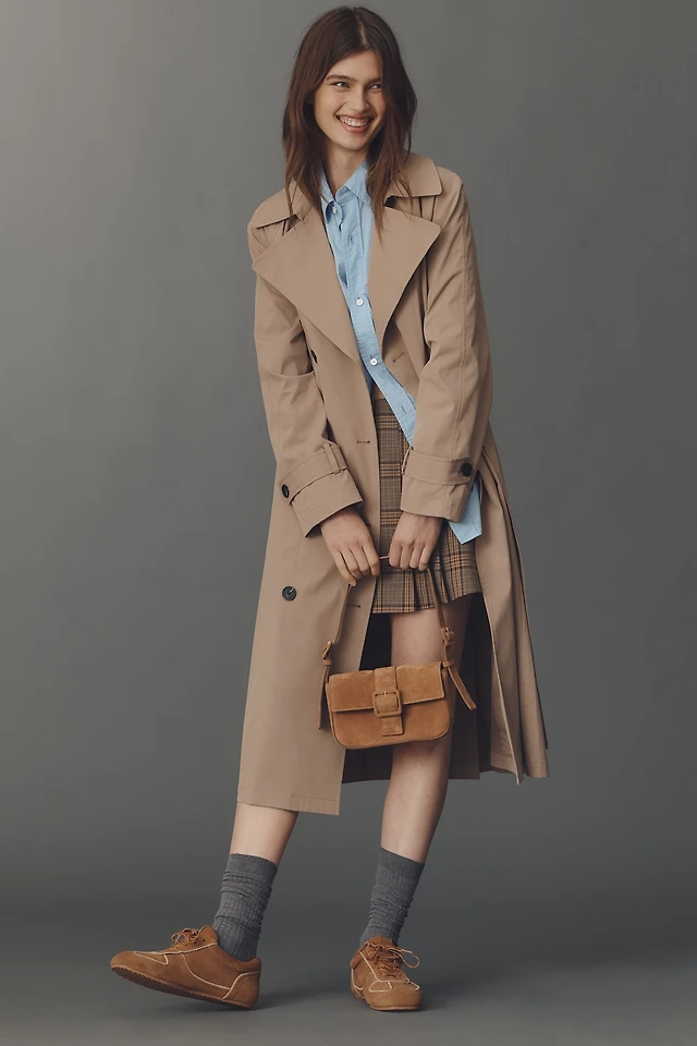 Bcbgmaxazria Petite Double-Breasted Faux-Suede Belted Trench Coat
