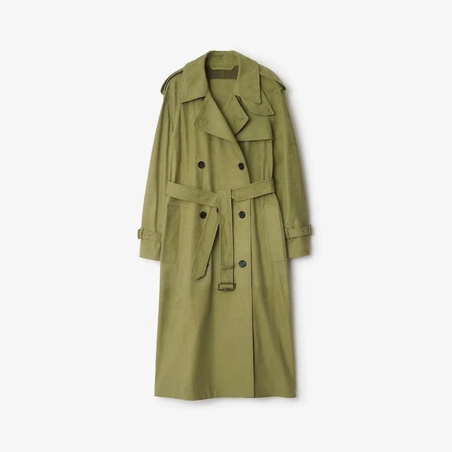 Long Cutout Daisy Suede Trench Coat in Tan - Women, Leather | Burberry® Official