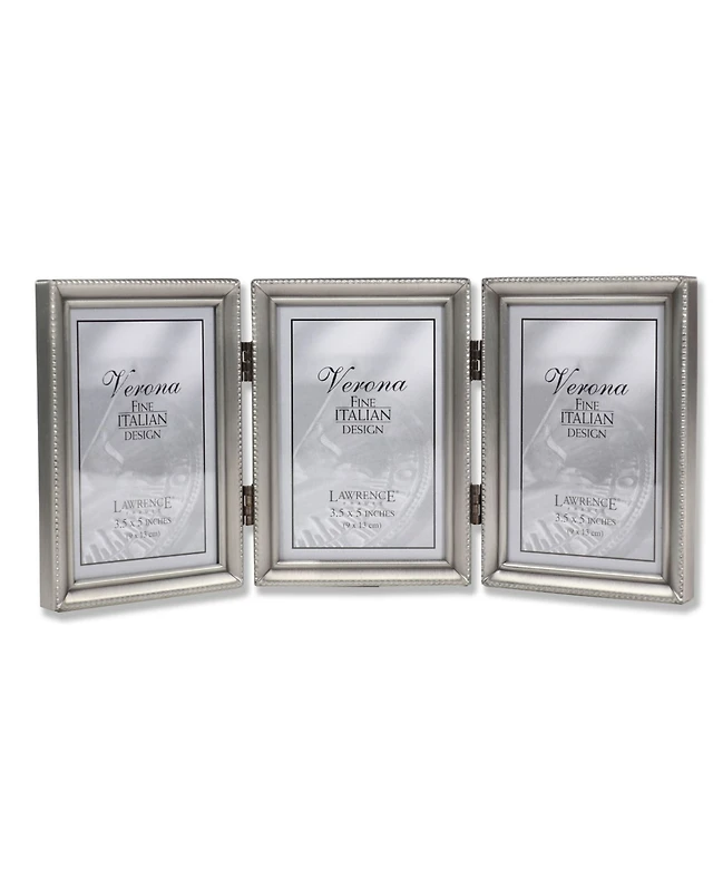 Lawrence Frames Antique Gold Brass Hinged Triple Picture Frame - Beaded Edge Design - 2" x 3"
