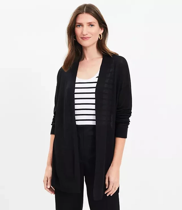 Kasper Women's Stitch-Detail Open-Front Cardigan Sweater