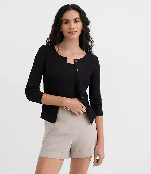 Ribbed Sleeve V-Neck Cardigan