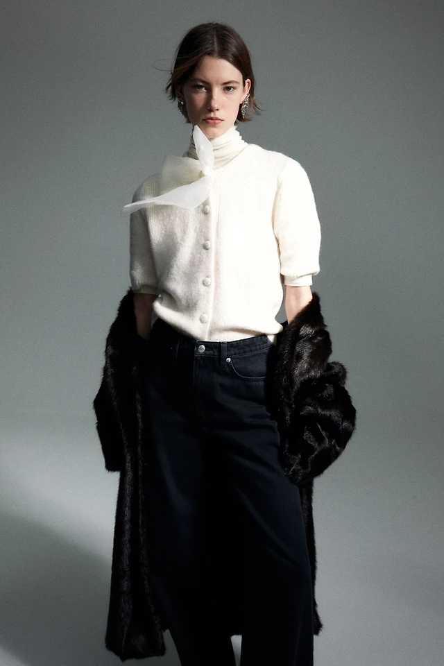 Short alpaca and wool blend cardigan