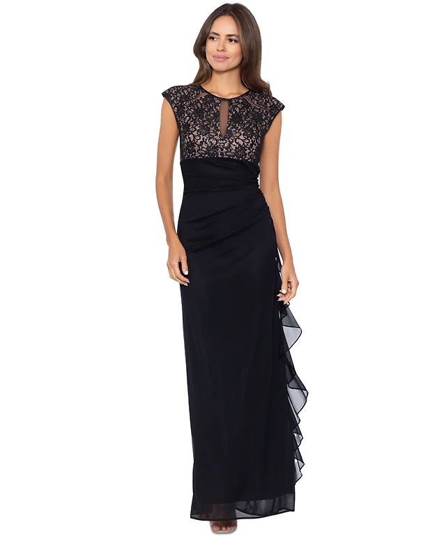 B&A by Betsy & Adam Lace Cutout-Top Gown